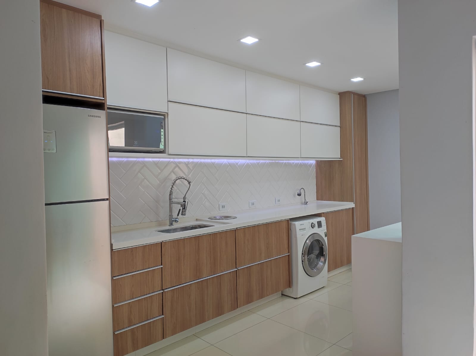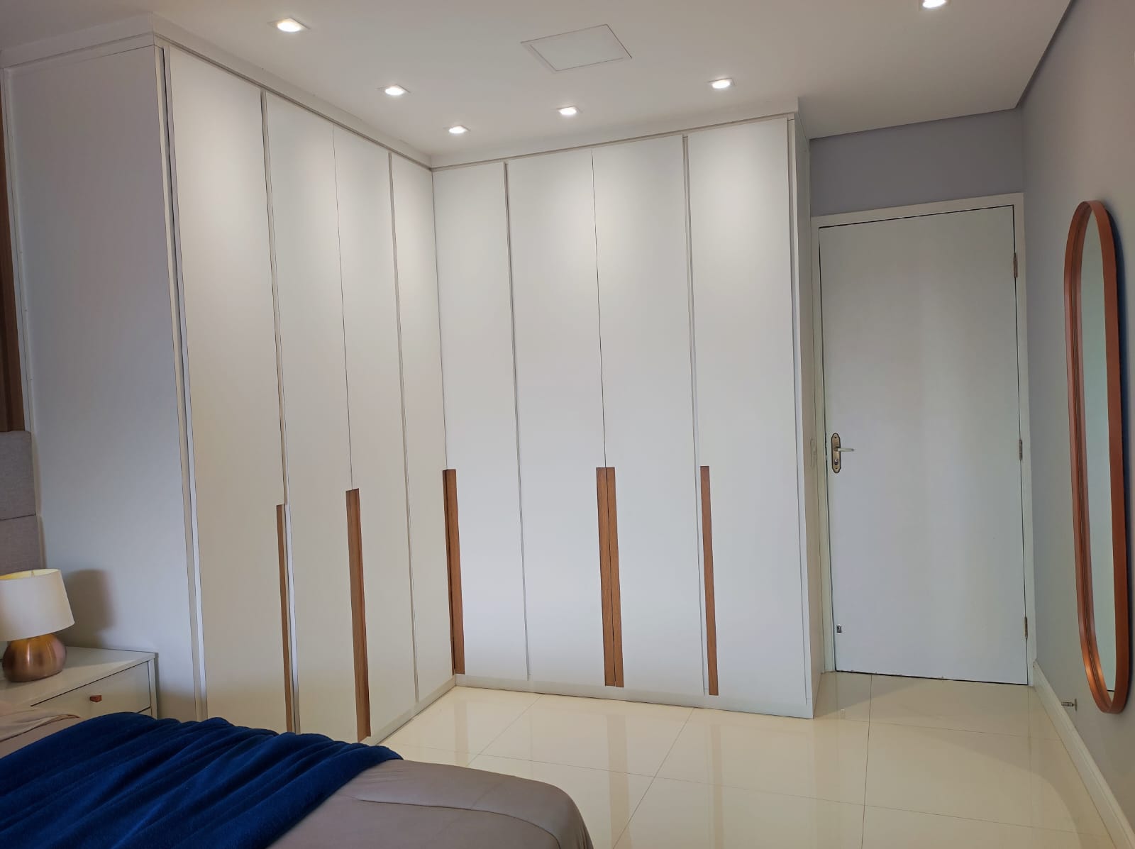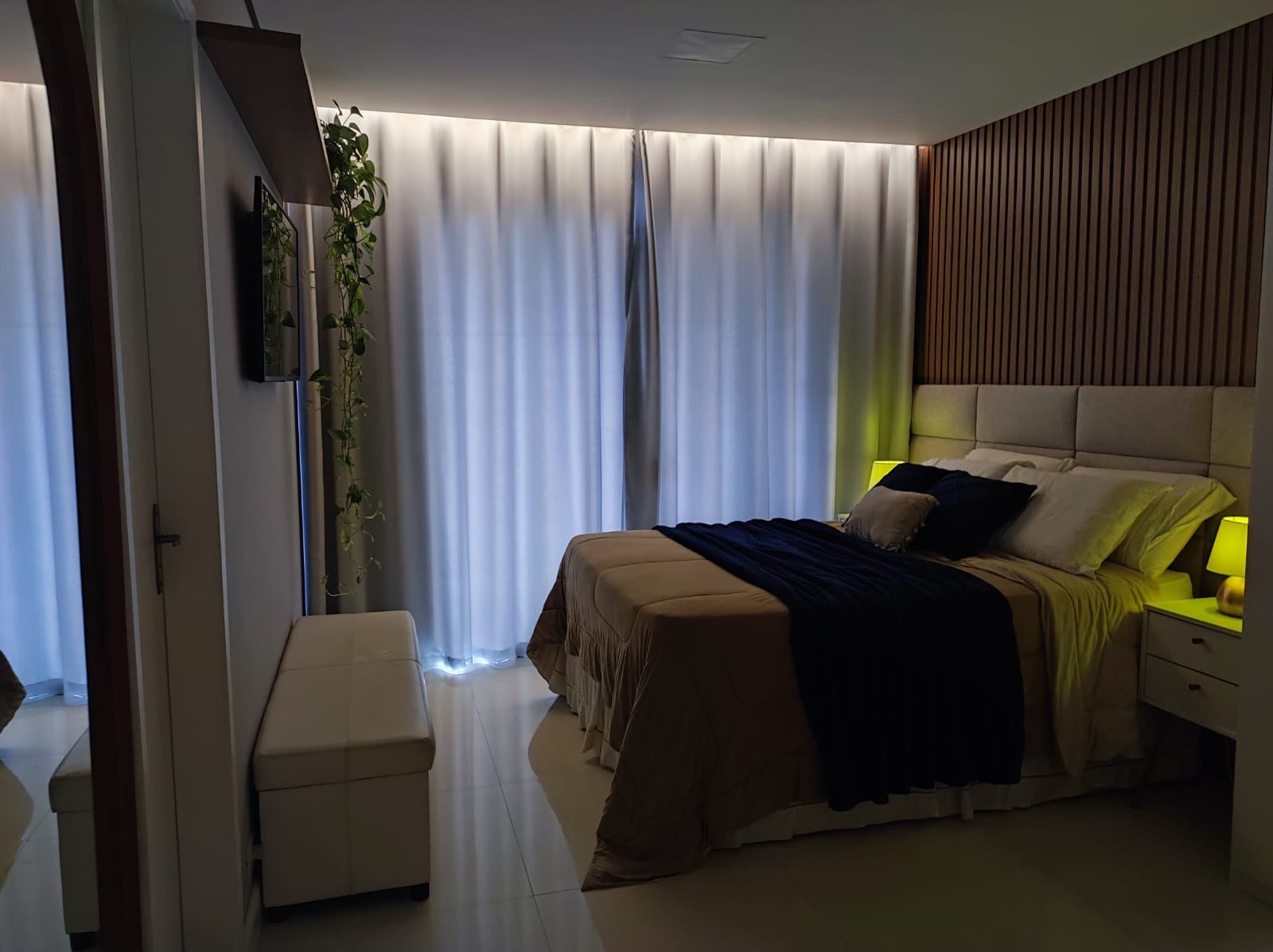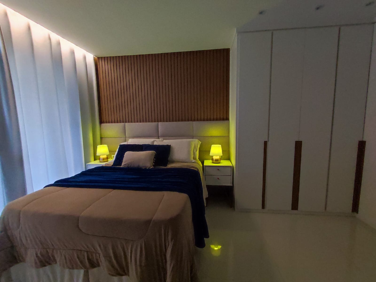 Cabeceira de cama sob medida, jogo d iluminação pela casa, forno e colktoop embutidos